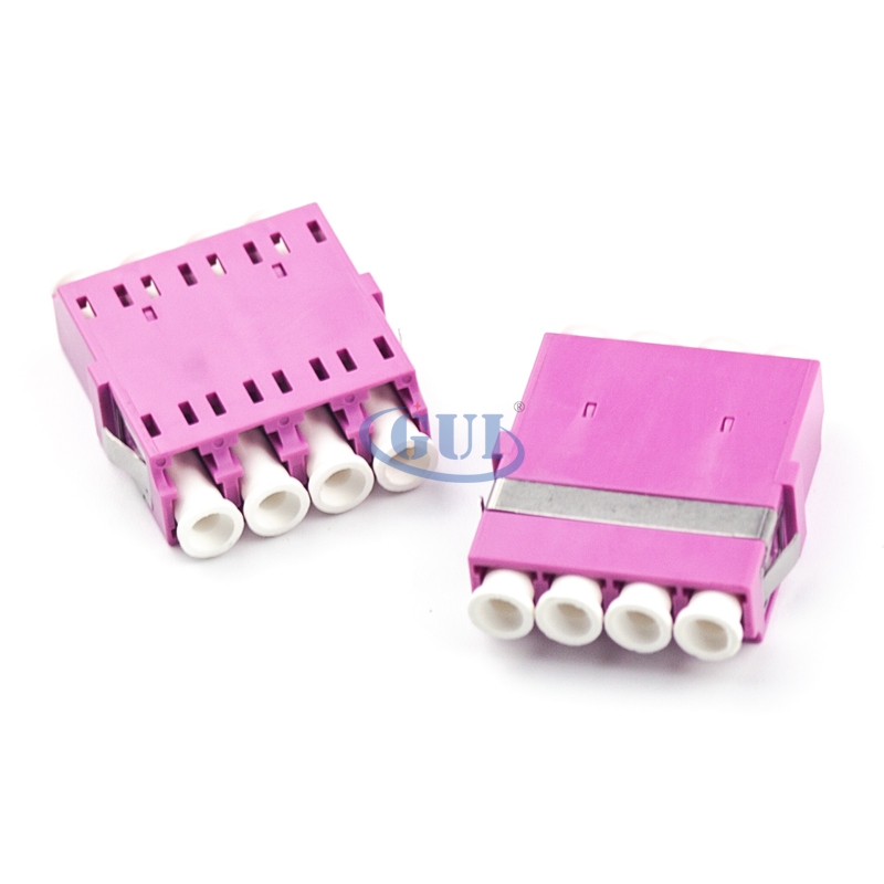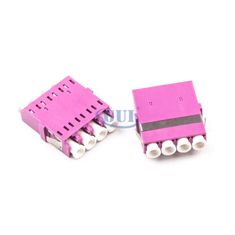 Fiber optic adapters are designed to connect two fiber optic cables together. They come in versions to connect single fibers together (simplex), two fibers together (duplex), or sometimes four fibers together (quad).