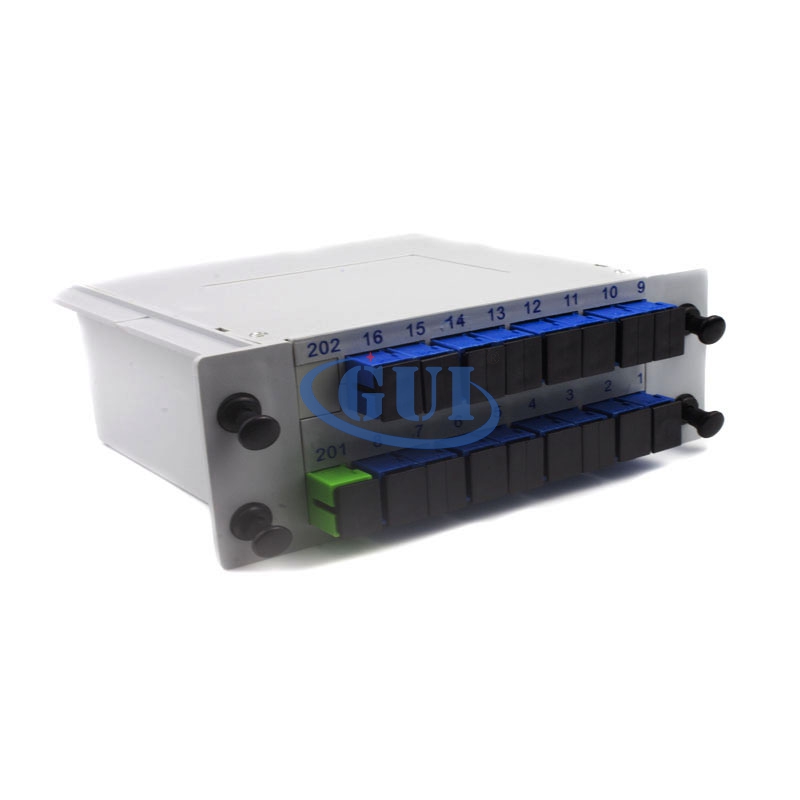 Planar lightwave circuit (PLC) splitter is a type of optical power management device that is fabricated using silica optical waveguide technology to distribute optical signals from Central Office (CO) to multiple premise locations. Blockless PLC splitter has stronger fiber protection than bare fiber splitter, which is a miniaturization result of cassette splitter. It's mainly used for various connection and distribution boxes or network cabinets.