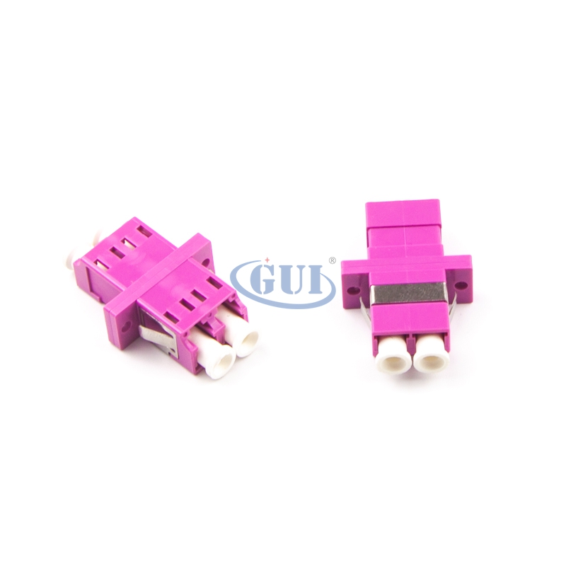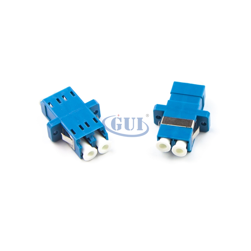 Fiber optic adapters are designed to connect two fiber optic cables together. They come in versions to connect single fibers together (simplex), two fibers together (duplex), or sometimes four fibers together (quad).